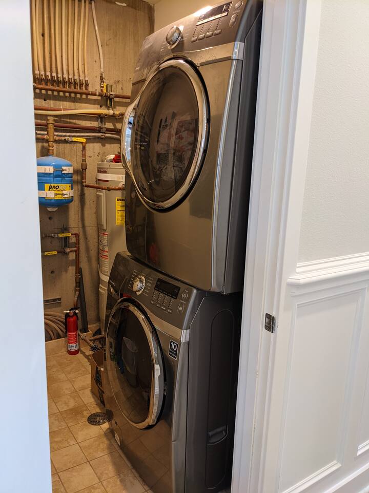 There is one assigned parking space per unit under the covered area (marked 105), there is also overflow parking available for a second vehicle.